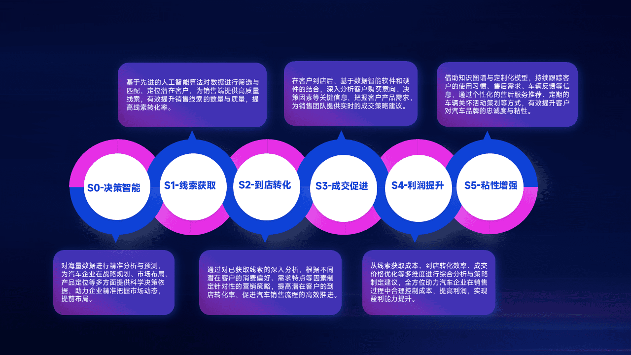通过拓宽潜在客户来源、、优化线索分配并提高到店转化率,,,以增强销售效率。。同时,,利用线索数据不断优化分析模型,,有效提升转化率,,,扩大营销影响力。。